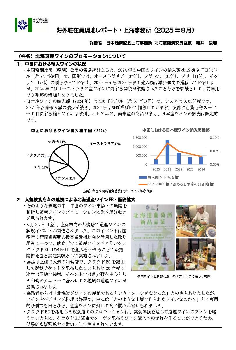 北海道産ワインのプロモーションについて